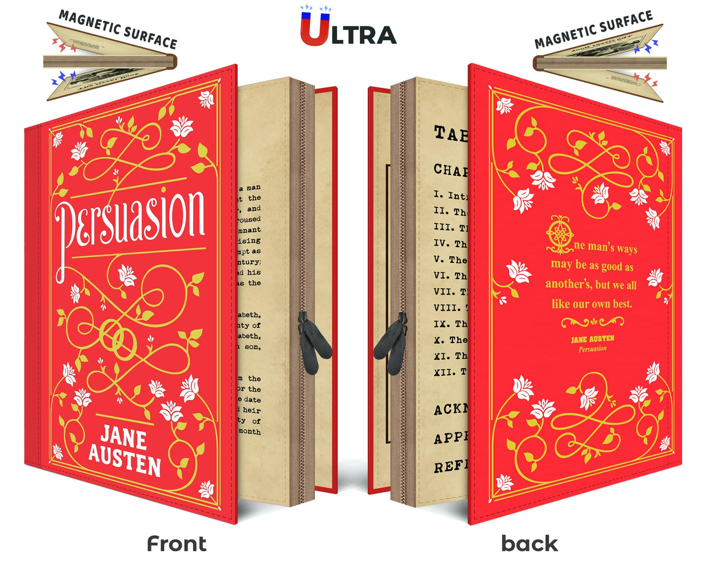 ULTRA: The masterpiece edition — front and back images, complemented by richly designed bookish pages that come alive with texture and allure. These pages are magnetic, giving the case a magical feel, as if the story within could leap off the covers and into your hands. And as a final touch, tucked within is a real page made of elegant kraft paper for jotting down fleeting ideas, thoughts, or lists. A luxurious ode to craftsmanship.