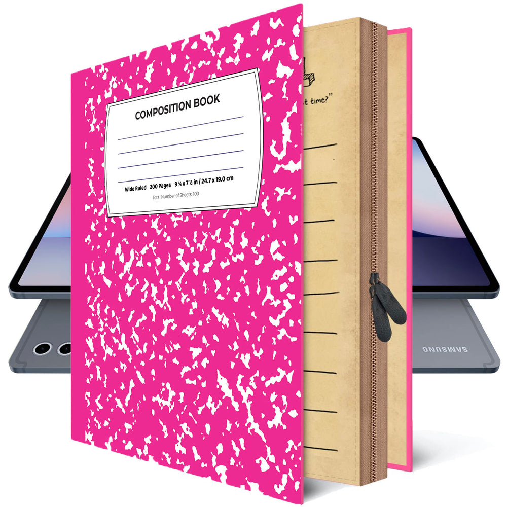 Verwandeln Sie Ihr Samsung Galaxy TAB S10 Ultra oder Samsung Galaxy TAB S10+ mit dem Pink Composition Book Case in ein verspieltes und dennoch professionelles Accessoire – die perfekte Mischung aus altmodischem Charme und modernem Komfort!