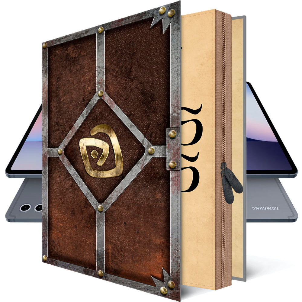 The exterior of this Galaxy TAB S9 case is designed with meticulous attention to detail, replicating the enigmatic look of the Shepherd’s Journal. The cover features intricate engravings and ancient script that mirror the design of the original journal. The spine and faux pages complete the authentic book-like appearance, making your Galaxy TAB S8 look like a treasured artifact.