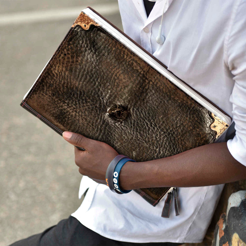 ECONO: The humble first edition — simple yet elegant. Wrapped in leather, its zippered cover holds an image on the front, like a cherished story waiting to be told. No pages, only pure essence, making it perfect for those who prefer minimalism.